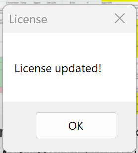 Nu kommer du få en bekräftelse att licensen uppdaterats