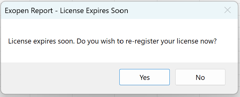 Din licens måste registreras vid första användningen, och därefter uppdateras varje år. Se nedan för hur du regsitrerar om din licens i Excel (Exopen Report) eller för webben (Exopen Web Report)