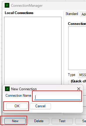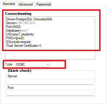 Fyll nu i kopplingssträng/DSN och se till att typen är korrekt.